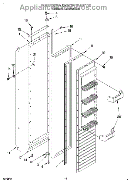 This screw is used to secure the handle end cap to the center of the door. The screw size measures 8-18 x 1/2 inches.