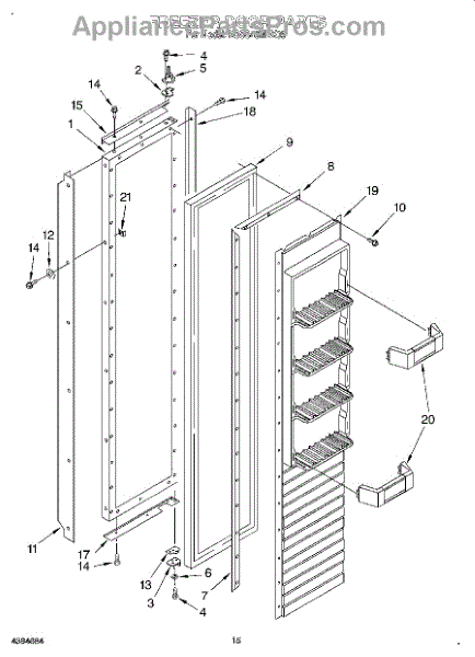 This screw is used to secure the handle end cap to the center of the door. The screw size measures 8-18 x 1/2 inches.