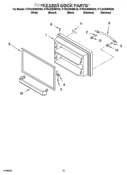 Parts for Kitchenaid KTRA22EMWH00: 07 - Freezer Door Parts