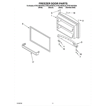 This freezer door gasket creates a tight seal around the door opening to keep cold air in and humidity out. Replacing a worn gasket restores proper door closure, helps prevent frost buildup, and supports consistent freezer temperatures.