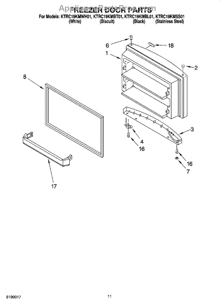 Parts for Kitchenaid KTRC19KMSS01: 06 - Freezer Door Parts, Optional Parts