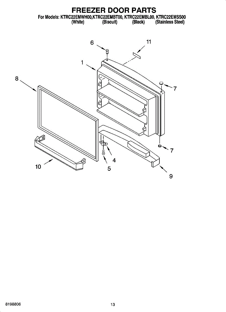 Parts for Kitchenaid KTRC22EMWH00: 07 - Freezer Door Parts