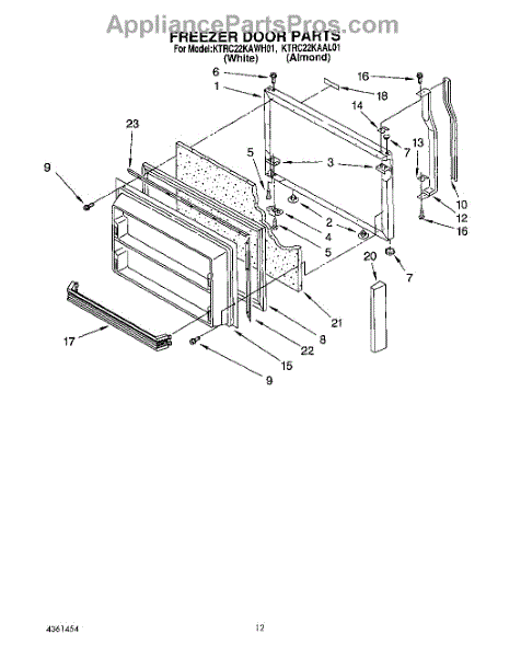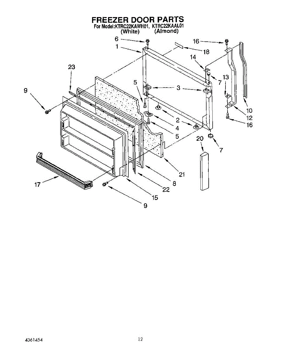 Parts for Kitchenaid KTRC22KAWH01: 07 - Freezer Door Parts