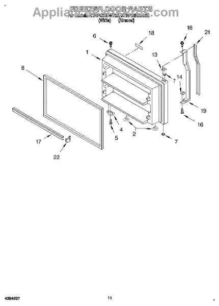 Parts for Kitchenaid KTRP20KDWH03: 06 - Freezer Door, Lit / Optional Parts