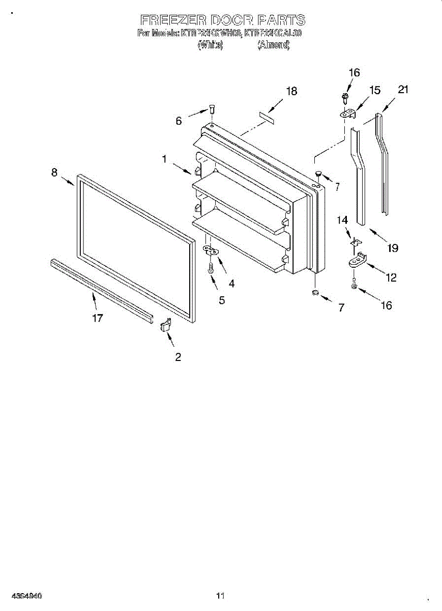 Seals freezer door to maintain temperature and efficiency. Replace if torn, cracked, or not sealing at corners. Confirm fit with your model number.