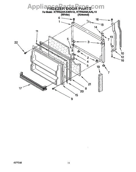 Parts for Kitchenaid KTRS20KAAL10: 07 - Freezer Door Parts