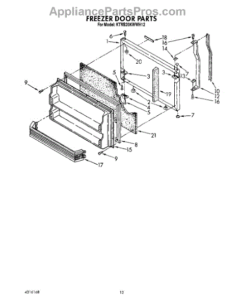 Parts for Kitchenaid KTRS20KWWH12: 07 - Freezer Door Parts