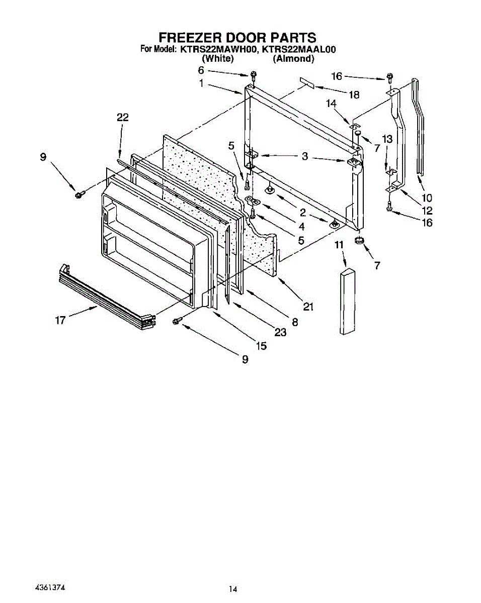 Parts for Kitchenaid KTRS22MAWH00: 09 - Freezer Door Parts