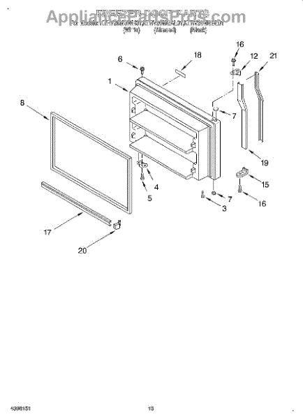 The Freezer Door Gasket is an OEM part for Whirlpool freezers. This gasket forms a tight seal around the freezer door, keeping the cold air inside and preventing warm air from entering, which helps to maintain the optimal temperature and efficiency of the freezer. The gasket measures approximately 20.19” x 31.29” Color: Misty Beige. For Black order 217731