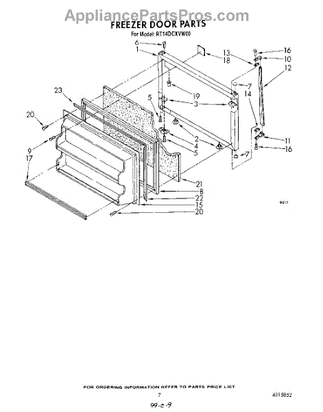 Parts for Whirlpool RT14DCXVG00: 06 - Freezer Door Parts