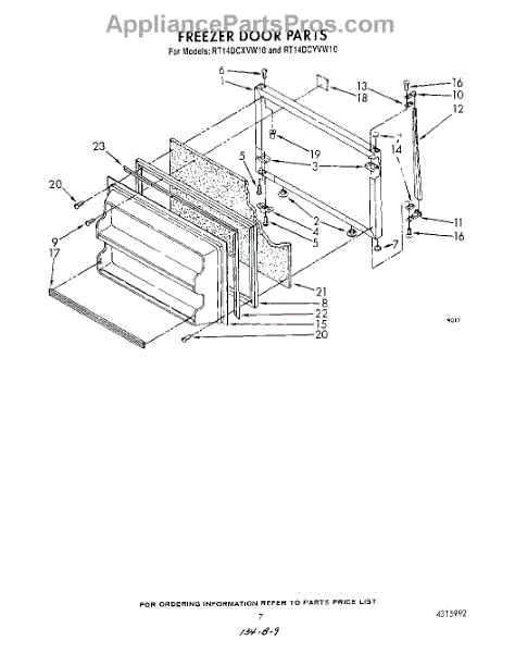 Parts for Whirlpool RT14DCXVL10: 06 - Freezer Door Parts