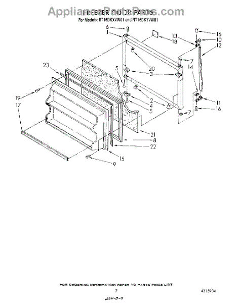 Parts for Whirlpool RT16DKXVG01: 06 - Freezer Door Parts