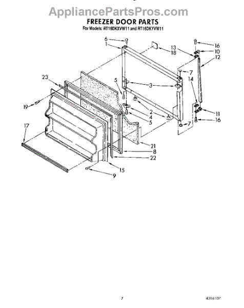 Parts for Whirlpool RT16DKXVG11: 06 - Freezer Door Parts