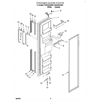 Parts for Whirlpool TS22AWXDW00: 07 - Freezer Door Parts