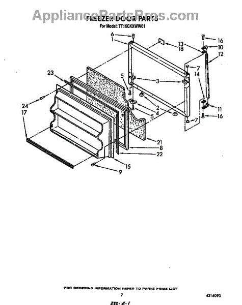 Parts for Whirlpool TT16CKXWW01: Freezer Door Parts