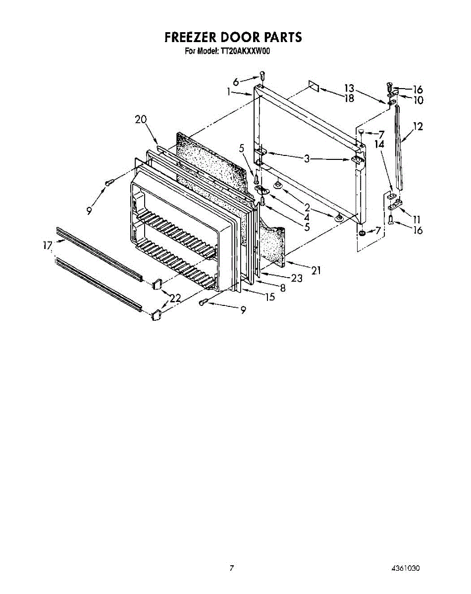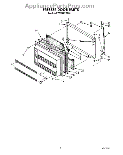 Parts for Whirlpool TT20AKXXW00: 05 - Freezer Door Parts