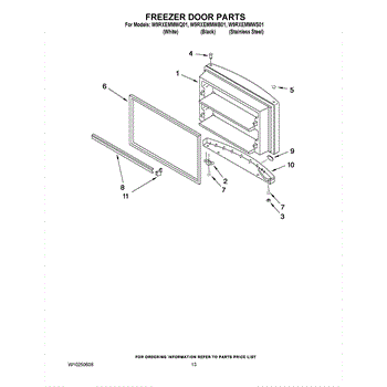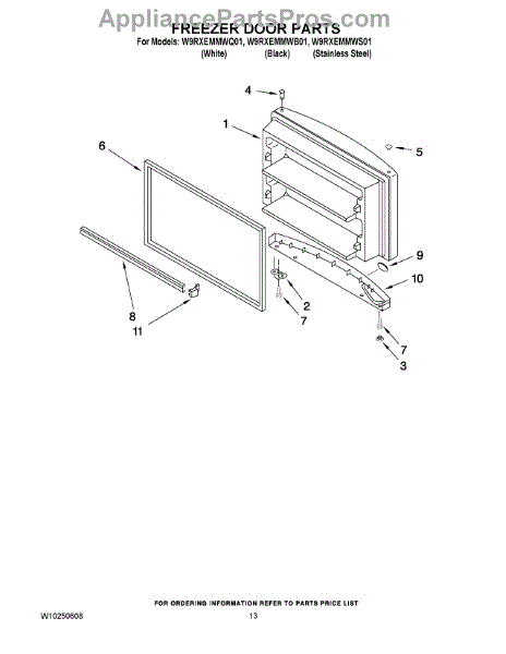 Parts for Whirlpool W9RXEMMWQ01: 07 - Freezer Door Parts