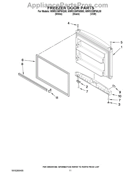Magnetic freezer door gasket creates an airtight seal. Replace if door doesn't seal properly or shows cracks. Verify fit with your model number.