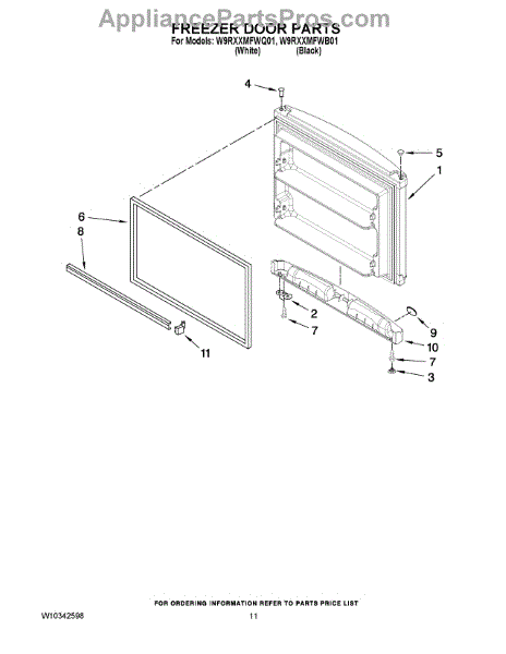 Parts for Whirlpool W9RXXMFWB01: 06 - Freezer Door Parts