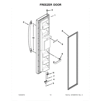 The Freezer Door Gasket is an OEM replacement part for Whirlpool refrigerators. It creates a tight insulating seal around the perimeter of the freezer door opening. The gasket helps maintain consistent sub-freezing temperatures inside by preventing cold air loss. Causes relate to natural compression fatigue over time, cracks developing with use, or accidental slicing/tears from sharp edges within the freezer. Symptoms of a compromised gasket include: