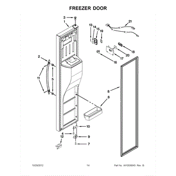 The Handle is an OEM component specifically designed for Whirlpool refrigerators. It provides easy access and convenient opening of the refrigerator door.