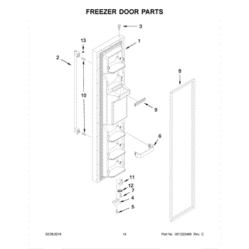 This freezer door shelf trim is the integrated retaining rail that secures items on the door bin. Replacing a cracked or missing rail restores a snug, reliable hold and keeps your freezer door storage tidy and usable.