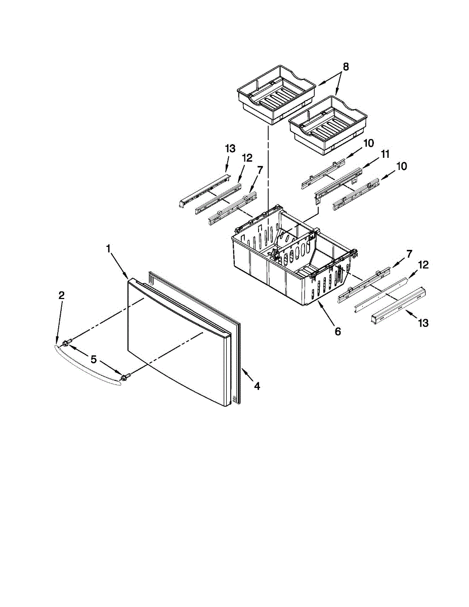 This upper freezer bin provides a roomy, secure shelf for organizing frozen foods and keeping items visible. It replaces a cracked or worn bin so the freezer door stores items safely and tidily. What it does