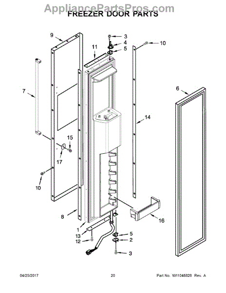 This shallow freezer door bin mounts on the inner door and restores organized storage for smaller items. Replace a cracked, loose, or missing bin to keep packages secure and easy to access.