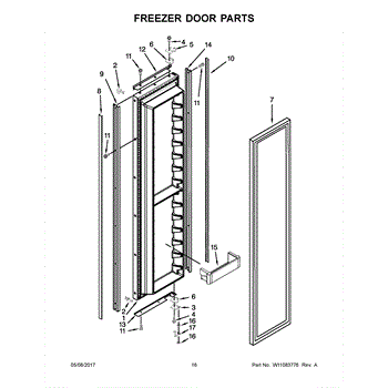 This shallow freezer door bin mounts on the inner door and restores organized storage for smaller items. Replace a cracked, loose, or missing bin to keep packages secure and easy to access.