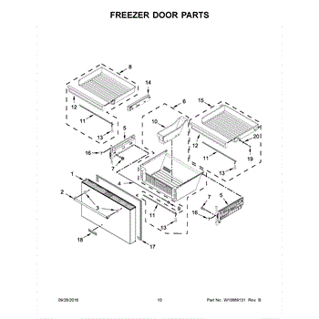 The Freezer Bin is an OEM component specifically designed for Whirlpool side-by-side refrigerators. It provides adjustable storage for various freezer items above the bottom drawers.