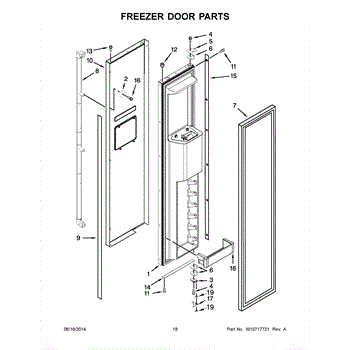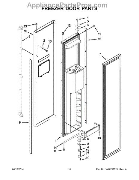 This top door spacer positions and supports the upper edge of the appliance door to maintain correct clearance and alignment for smooth opening and closing. It helps keep the door trim and glass properly spaced for reliable operation. What it does: