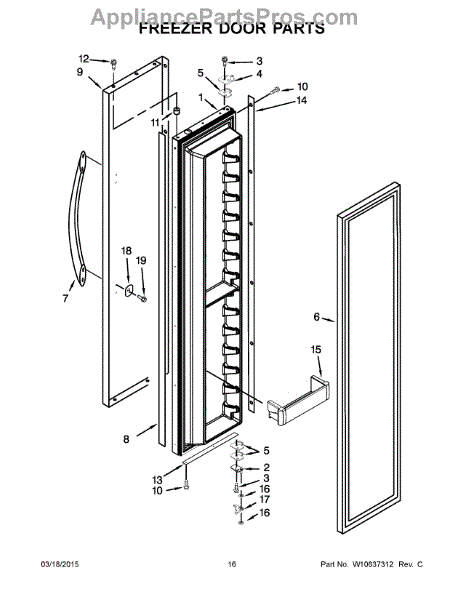 This shallow freezer door bin mounts on the inner door and restores organized storage for smaller items. Replace a cracked, loose, or missing bin to keep packages secure and easy to access.