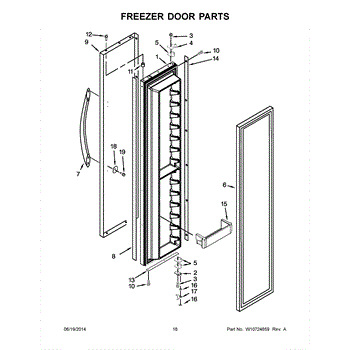 This shallow freezer door bin mounts on the inner door and restores organized storage for smaller items. Replace a cracked, loose, or missing bin to keep packages secure and easy to access.