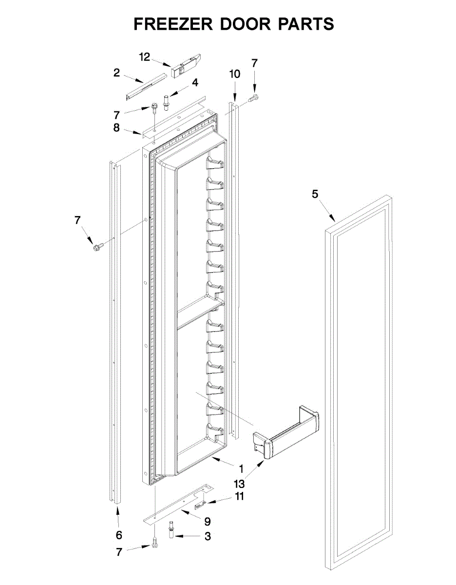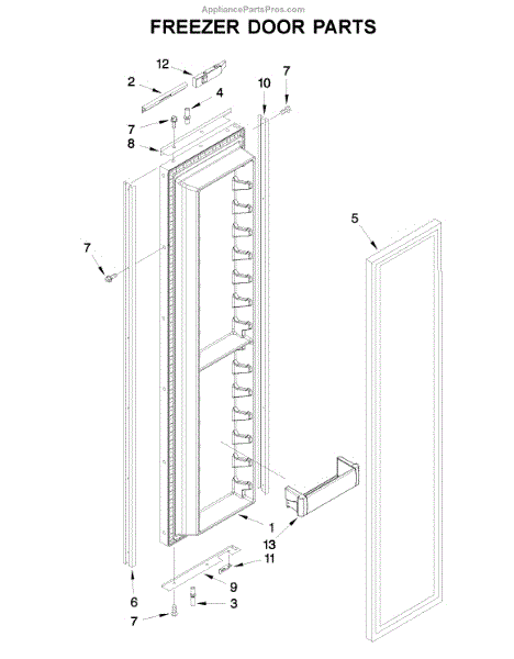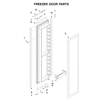 This shallow freezer door bin mounts on the inner door and restores organized storage for smaller items. Replace a cracked, loose, or missing bin to keep packages secure and easy to access.