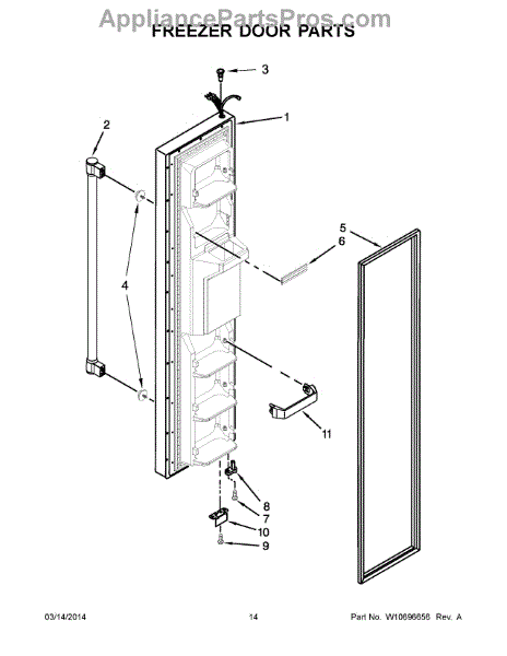 Mounts on the bottom of the freezer door.