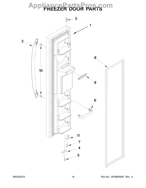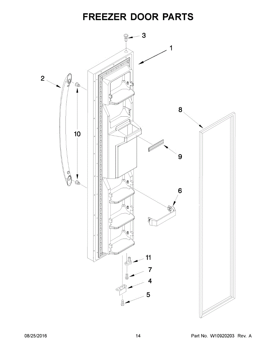 Mounts on the bottom of the freezer door.