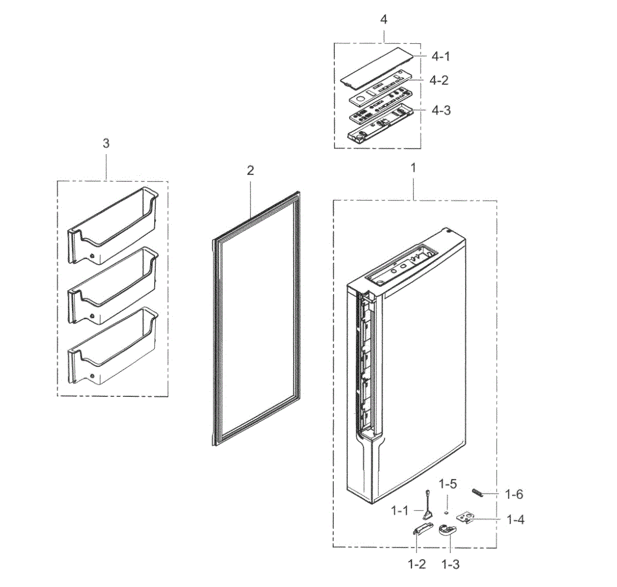 Cushions and seals the door hinge connection to prevent scraping and maintain proper door alignment. Replace if worn, cracked, or causing noise.