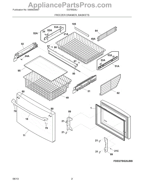 This slide assembly restores smooth, stable movement to your refrigerator drawer or basket so it opens and closes easily and stays aligned. Replace a worn or cracked slide to eliminate sticking, sagging, or track problems.