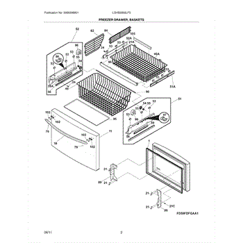 Complete slide assembly for refrigerator freezer drawer baskets. Replaces broken or worn plastic housing and metal rails for smooth gliding action.