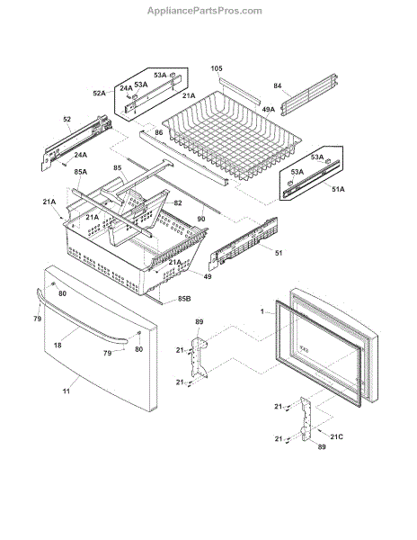 This slide assembly restores smooth, stable movement to your refrigerator drawer or basket so it opens and closes easily and stays aligned. Replace a worn or cracked slide to eliminate sticking, sagging, or track problems.