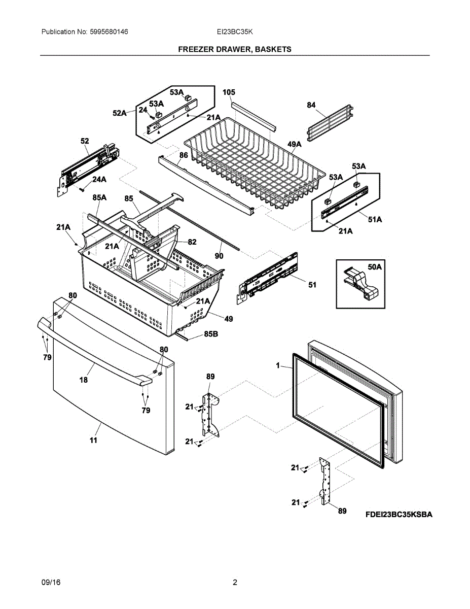 Plastic storage basket that organizes items in the freezer drawer. Replace if cracked, broken, or missing to restore proper food organization.