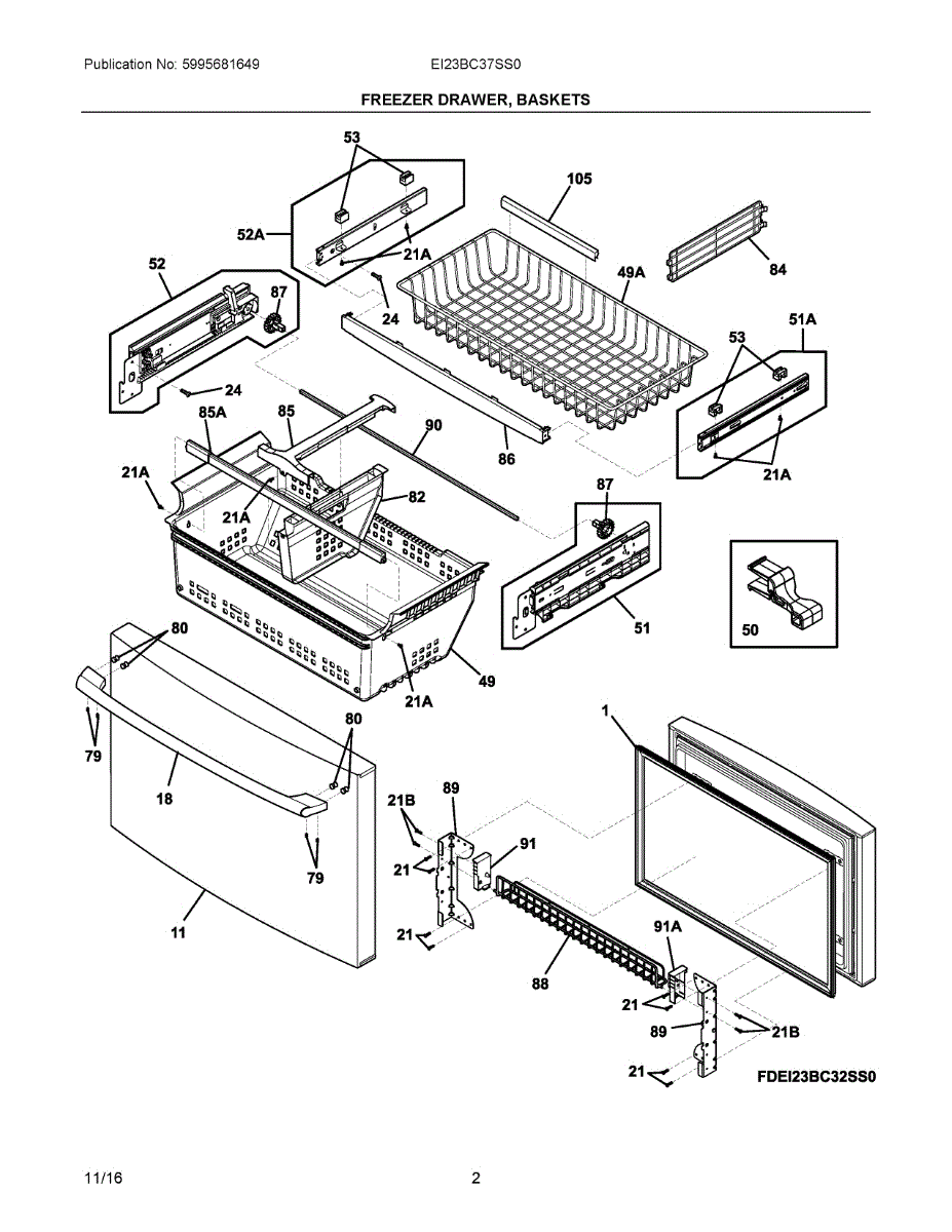 Plastic storage basket that organizes items in the freezer drawer. Replace if cracked, broken, or missing to restore proper food organization.