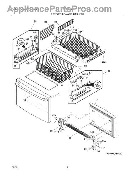 Parts for Electrolux EI28BS55IS1: 03 - Freezer Drawer,Baskets Parts