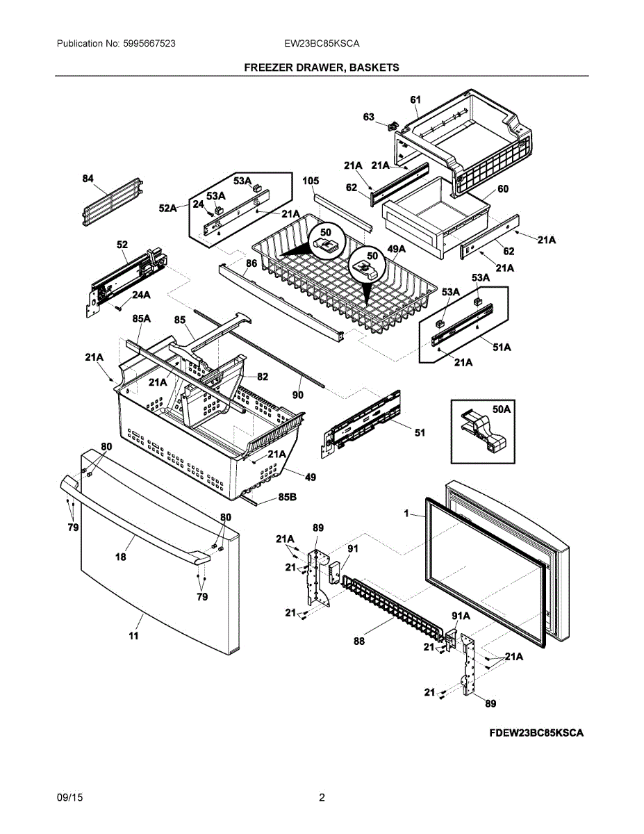 Plastic storage basket that organizes items in the freezer drawer. Replace if cracked, broken, or missing to restore proper food organization.