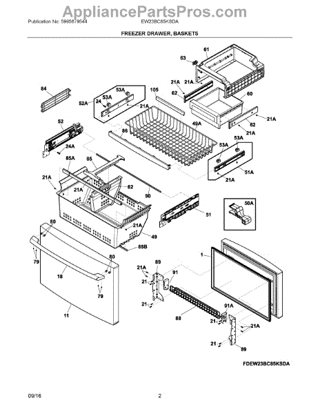 Parts for Electrolux EW23BC85KSDA: 02 - Freezer Drawer, Baskets Parts