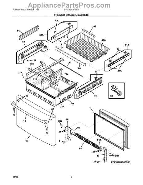 This replacement freezer basket provides an easy way to organize and access frozen foods inside the freezer compartment. It restores usable storage space and keeps items contained for neater, more efficient freezing. What it does: