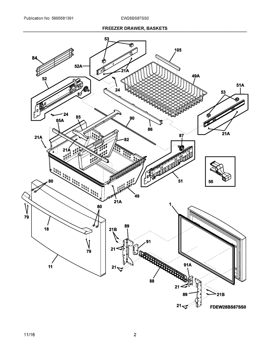 Wire freezer basket for bottom-mount refrigerators. Organizes frozen foods in a removable bin. Replace if your basket is cracked, broken, or missing.