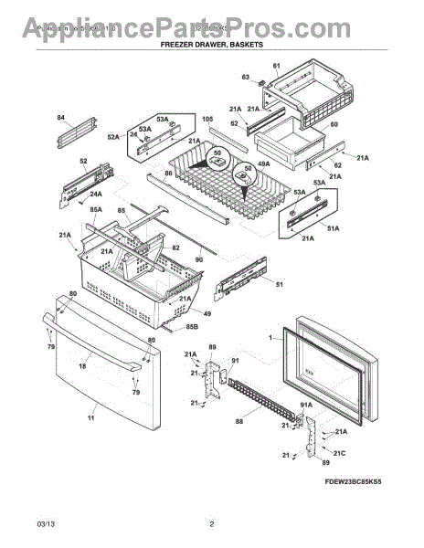 Parts for Frigidaire EI23BC80KS3: 03 - Freezer Drawer, Baskets Parts