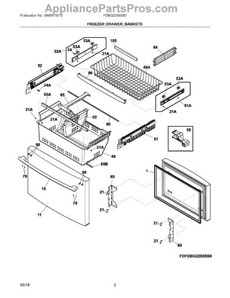Wire freezer basket installs in the freezer compartment to organize frozen foods. Replace a cracked, broken, or missing basket to restore storage space.