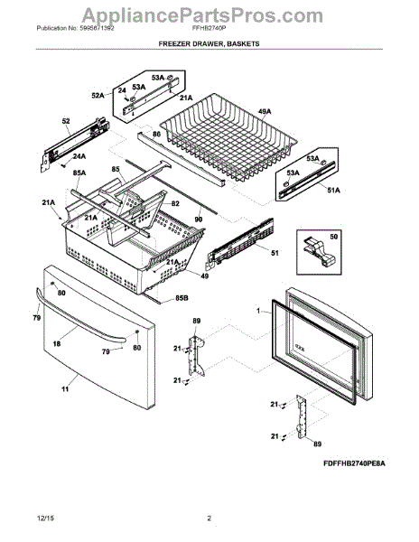 This slide assembly is the replacement drawer slide that guides and supports a refrigerator/freezer drawer for smooth opening and closing. Restores proper drawer alignment and reduces binding or falling drawers. What it does: